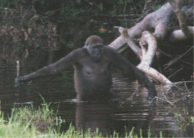 The October 8 issue of New Scientist shows a picture of a gorilla using a stick as a depth gauge.