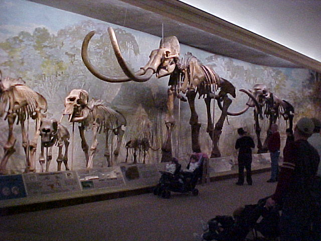 Elephant HallElephant Hall is the first thing you see when you enter the University of Nebraska State Museum. They have an excellent collection of skeletons of elephants that used to live in Nebraska. This picture shows just a small portion of it. |