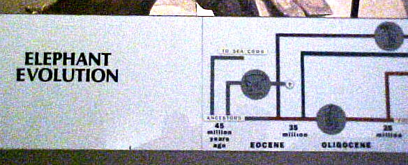 The elephants are fine, but they just had to ruin the science with silly speculation. Along the bottom of the display, they show fictitious timelines of evolution. |