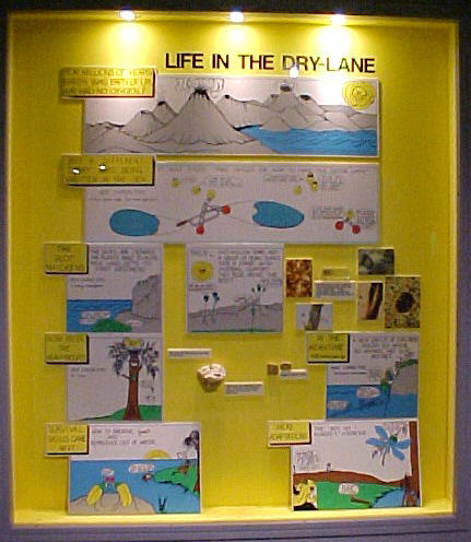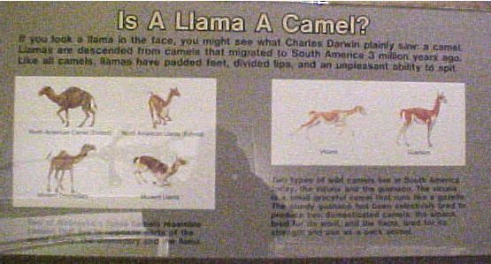 In this display they quickly skip from "For millions of years the earth was empty of life. Earth had no oxygen!" to "The seas are crowded. The plants want to move. Thus the land gets its first explorers." It is so silly it is embarrassing. But what can you expect from a museum that can't tell a llama from a camel? |