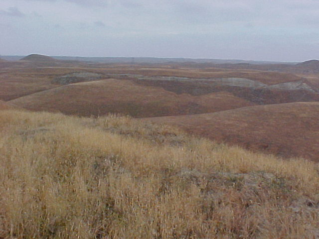 The area northeast of Bakersfield consists of rolling hills whose tops are roughly equal in height.