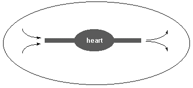 In an open circulatory system, blood leaves the blood [what?] and flows freely within the tissues. This system is not very efficient because there is no blood pressure to move blood rapidly through the tissues. The oval line in the diagram below represents an animals [sic] body.