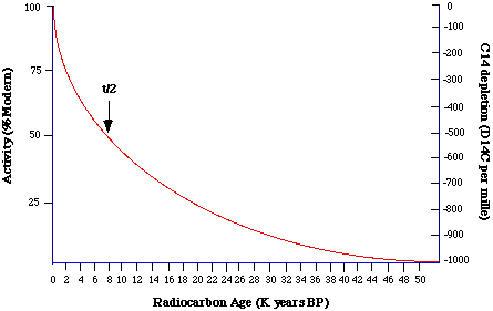 We can't predict which Carbon 14 atom will decay any more than we can predict which particular crystal in an ice cube will melt first. But, knowing the temperature (and the size of the ice cube) we can predict how long it will take for half of the crystals in an ice cube to melt. In the same way, we can't predict which Carbon 14 atom will decay into Nitrogen 14; but we do know how long it will take for half of the atoms to decay. That time is called the "half-life."
