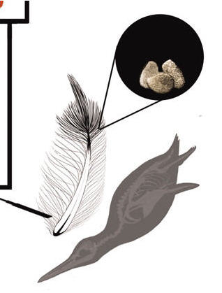All preserved feather types in Inkayacu record melanosomes of dimensions within the range for avian taxa other than extant [living] penguins. Although the length of extant penguin melanosomes was similar to other eumelanosomes, (mean of ~900 nm), their width (mean of ~440 nm) was far greater than all other Aves [birds] sampled (mean of ~300 nm) and in some cases approached their length (table S3). We thus analyzed them as a separate class in a discriminant analysis. We used four properties of melanosome morphology and distribution--long-axis variation, short-axis skew, aspect ratio, and density--to estimate the color predicted from the fossil feather samples. All six Inkayacu samples were assigned a gray or reddish-brown color with high probability, and none clustered with extant penguin samples. 2 |