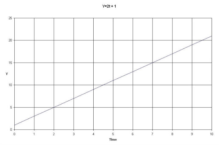 If we plot Y as a function of TIME, the graph will have a certain shape. The simplest shape is a straight line, like the one below.