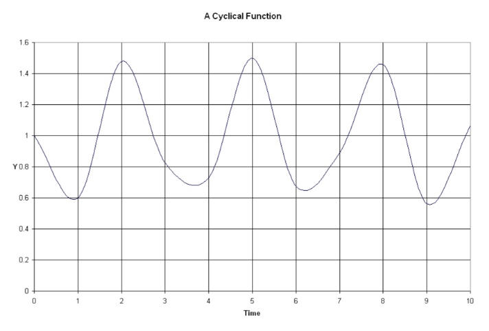 But suppose the graph isn't a straight line. Suppose it is a cyclic graph like the wave in the graph below. (Imagine it is something like the plot of average daily temperature over several years.)