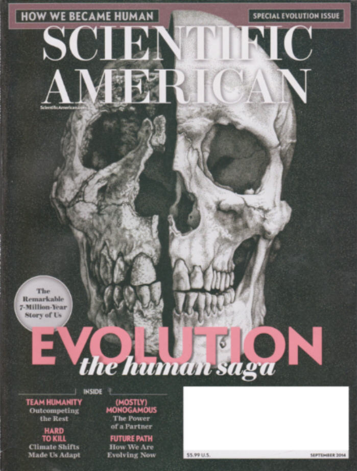 The cover of this month's issue of Scientific American promised to be a "special evolution issue" about "Evolution, the human saga," which tells "the remarkable 7-million-year story of us." We strongly encourage you to run right out and buy the issue because it basically says that practically everything ever written about human evolution in the past is wrong.
