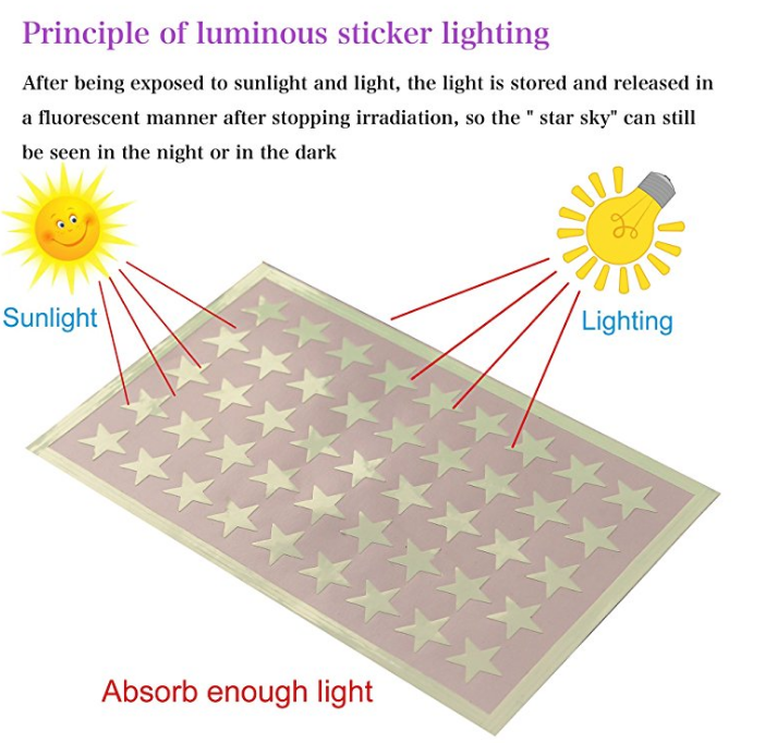The longer the lights have been turned off, the dimmer the stars. The obvious fallacy in this method is that their brightness depends upon how long the bedroom lights were on before they were turned off.