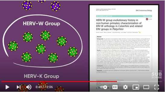 An endogenous retrovirus is a stretch of DNA found in your DNA that got there when one of your ancestors was infected by a retrovirus. [4:51-5:00] |