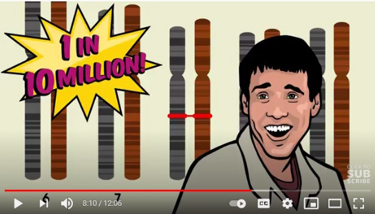 But if chimps and humans are not related, those virus genes will not be found in identical locations of both chimp and human DNA. This is because when a retrovirus infects a host there are many different spots in a host genome where it might end up inserting itself. Extensive lab experiments with retroviruses have found that there are far more than 10 million possible insertion spots in the human genome. In other words, the chance of a human and a chimp getting infected in the exact same spot by the same specific type of virus is far less than one in ten million. [7:33-8:07] |