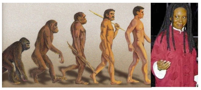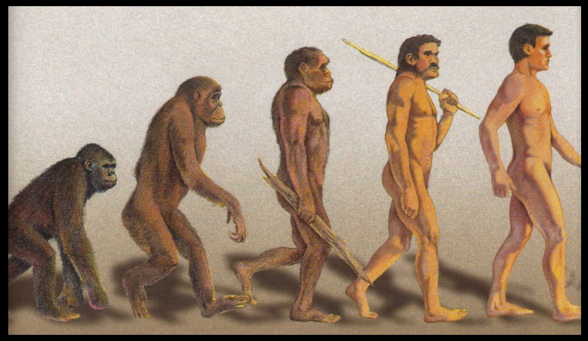 If you look at any picture of the progression of apes to man, you will notice a common thread. The number of intermediate forms may be different, and the individual stages may be different, but one thing is always the same. There is a progression from a dark, hairy ape to a relatively hairless, fair-skinned man. You never see pictures like this: