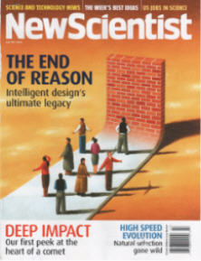 The cover of the July 9-15, 2005, issue of New Scientist proclaimed that Intelligent Design's ultimate legacy will be "the end of reason." The cover art shows scientists coming up against a brick wall, with no place to turn. In their editorial they explained,