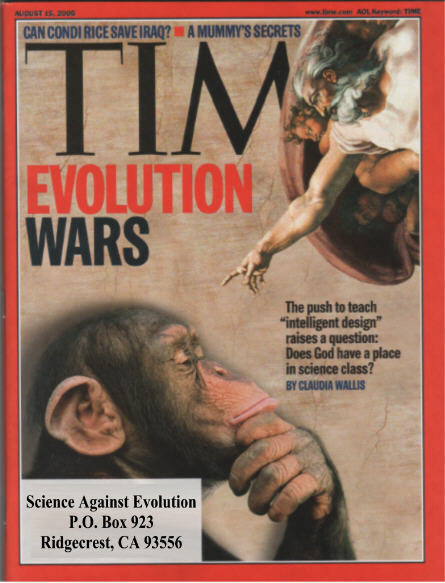 The Time magazine cover asked the question, "Does God have a place in science class?" Evolutionists typically argue that opposition to evolution is religiously motivated. They try to counter this by arguing that evolution and religion are compatible. What they don't seem to realize is that only a small portion of the opposition is religiously motivated. The evidence is right in front of their faces, and has been for a long time. Last November we reported on a National Geographic article containing statistics showing that the number of people who oppose evolution far exceeds the number of religious fundamentalists. This should have showed National Geographic that the opposition isn't entirely religiously motivated, but they wrote it off as evidence that people don't understand their own religious beliefs. Because they erroneously think this is a question of religion versus science, evolutionists often make statements like this one: